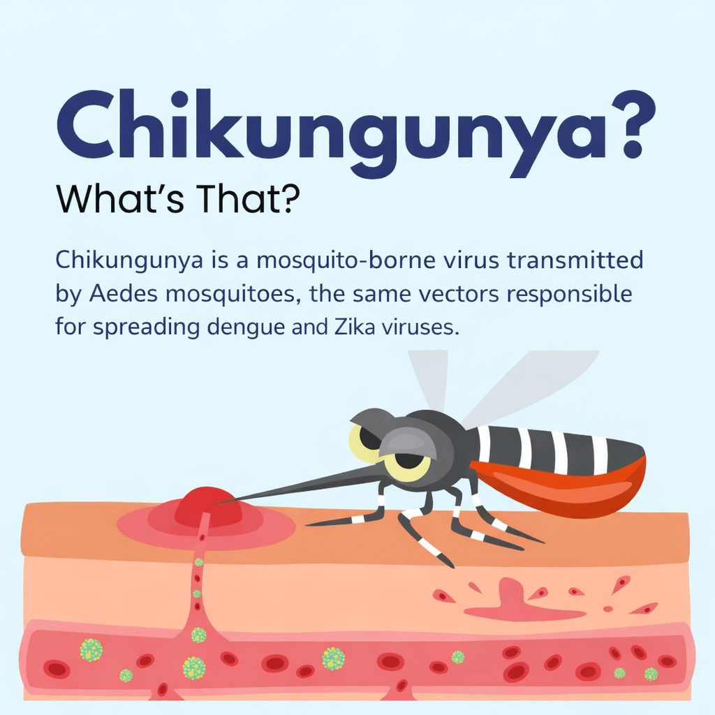 ● Sudden high fever ● Severe joint pain (often in hands and feet) ● Headaches and muscle aches ● Skin rash ● Long-lasting fatigue